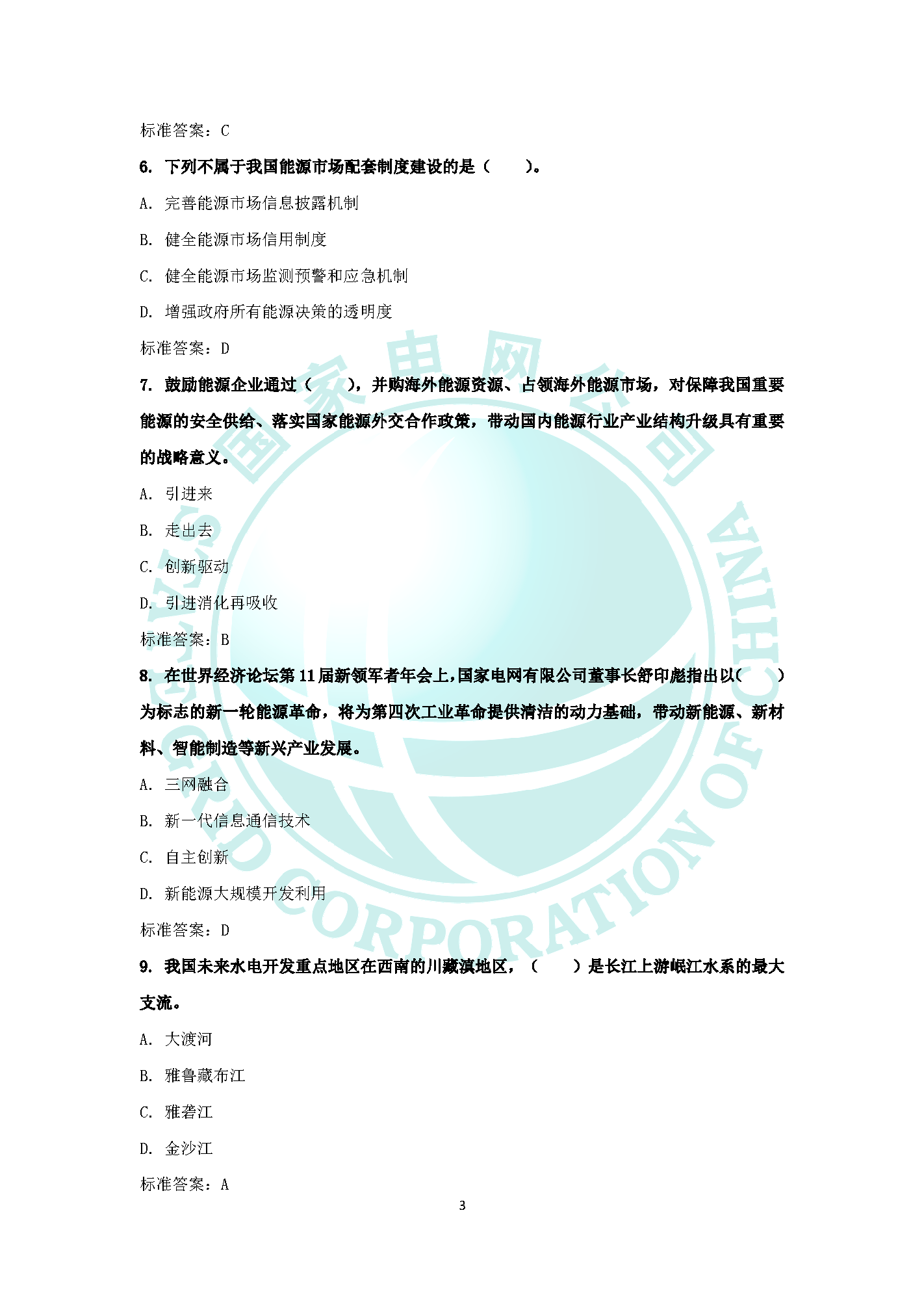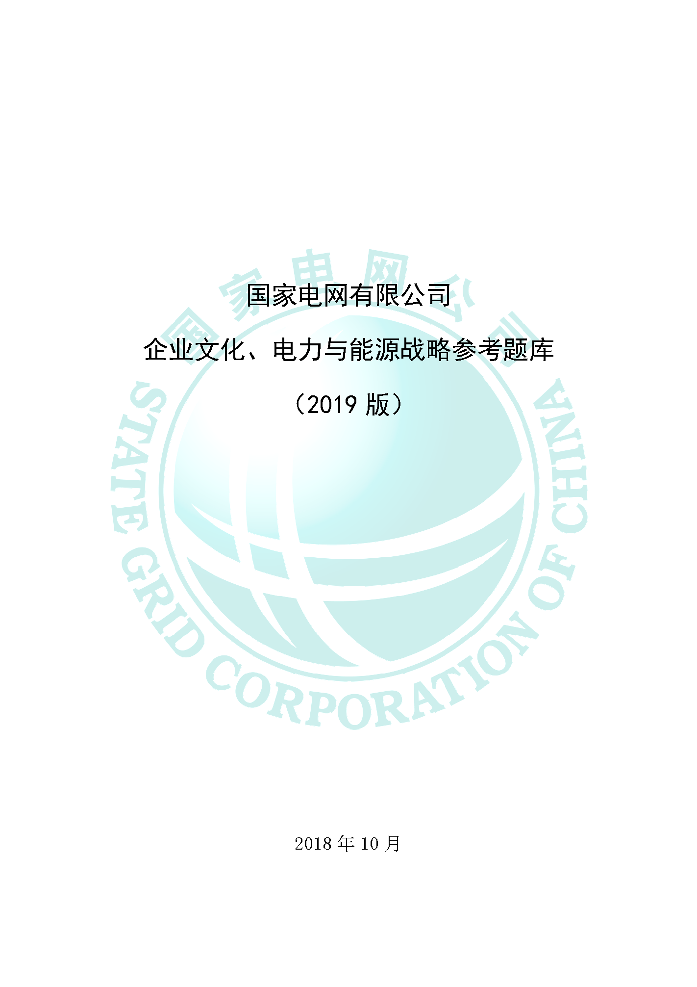 2019國家電網(wǎng)企業(yè)文化電力與能源戰(zhàn)略題庫(一)