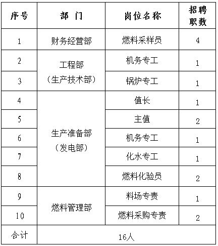 根據(jù)工作需要,面向集團(tuán)公司系統(tǒng)內(nèi)公開(kāi)招聘燃料采樣員等16人,具體招聘事項(xiàng)公告如下: