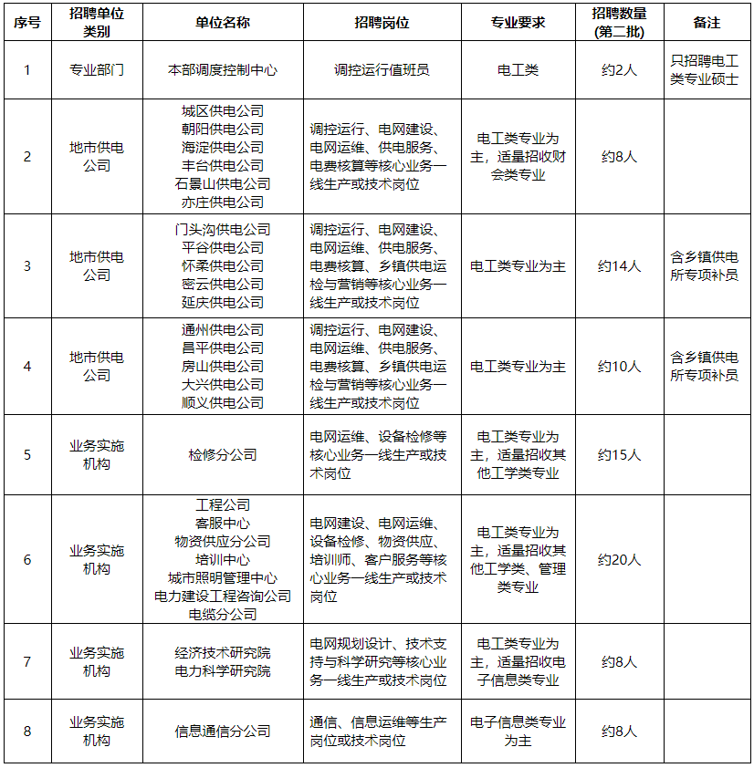 1.應(yīng)聘城區(qū)、朝陽(yáng)、海淀供電公司的,碩士?jī)?yōu)先。