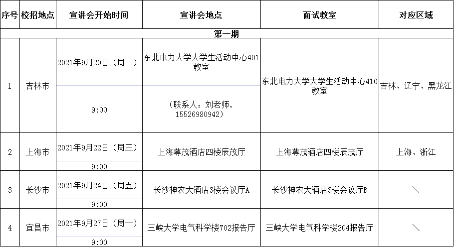 6.本表中注明了“對應區(qū)域”的,請滿足校園招聘條件的同學根據(jù)學校所在“對應區(qū)域”參加;學校不在“對應區(qū)域”的同學,可自行選擇開放式校招點(如酒店會議室)參加校園招聘。