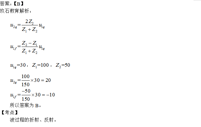 4、50Ω,假設(shè)有一無(wú)窮長(zhǎng)指教電壓波30kv從線路1向線路2傳播,在A點(diǎn)形成的折射波Uq和反射波Uf分別為( )。