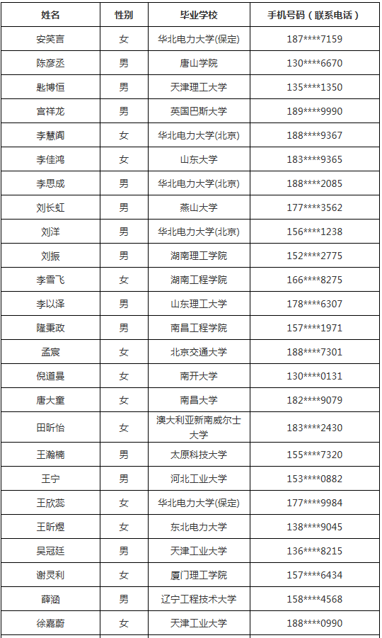 2019年國網(wǎng)天津市電力有限公司第2批高校畢業(yè)生錄用人員公示