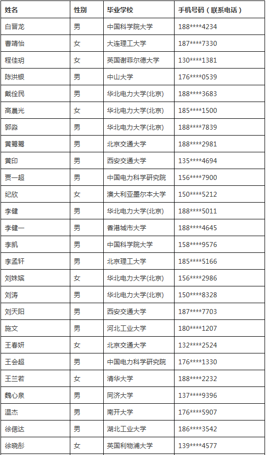注:手機號碼(聯(lián)系電話)是應聘人在國家電網(wǎng)公司人力資源招聘平臺中登記的聯(lián)系電話。