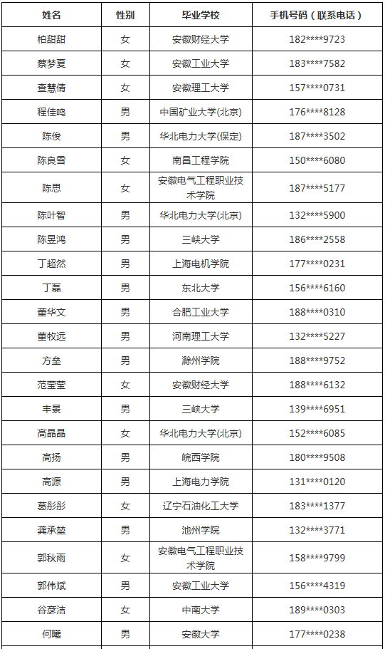 注:手機(jī)號(hào)碼(聯(lián)系電話(huà))是應(yīng)聘人在國(guó)家電網(wǎng)公司人力資源招聘平臺(tái)中登記的聯(lián)系電話(huà)。