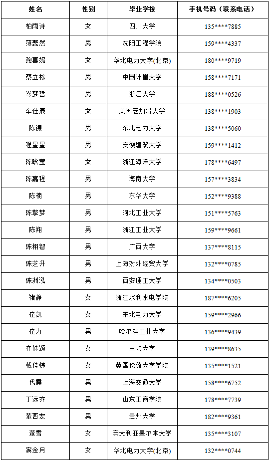 注:手機(jī)號(hào)碼(聯(lián)系電話)是應(yīng)聘人在國(guó)家電網(wǎng)公司人力資源招聘平臺(tái)中登記的聯(lián)系電話。