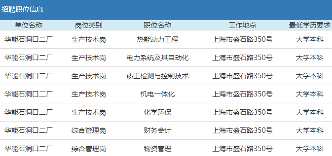 2019年華能集團(tuán)上海石洞口第二電廠招聘公告