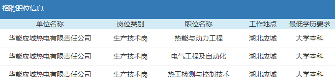 2019年華能集團(tuán)應(yīng)城熱電有限責(zé)任公司高校應(yīng)屆畢業(yè)生招聘公告