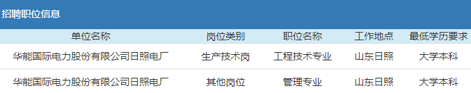 2019年華能集團日照電廠應屆高校畢業(yè)生招聘公告