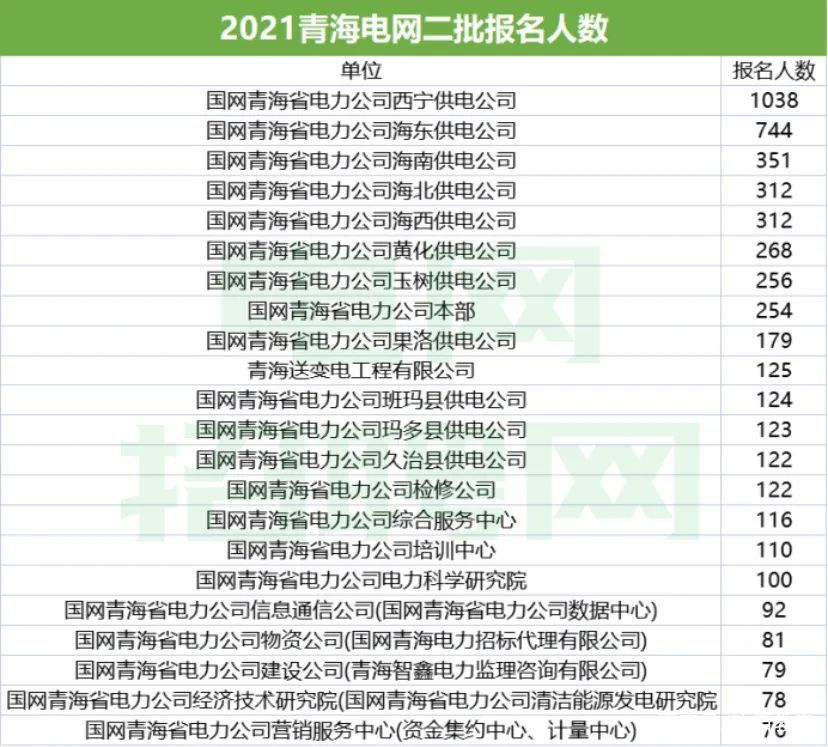 2021年一批中報(bào)考前五位單位分別是西寧,海東,海南,海北與海西供電公司。