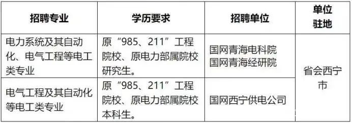 1、專業(yè)類型及學(xué)歷需求:2021青海電網(wǎng)僅面向985211工程院校,原電力部屬院校本科或研究生招聘